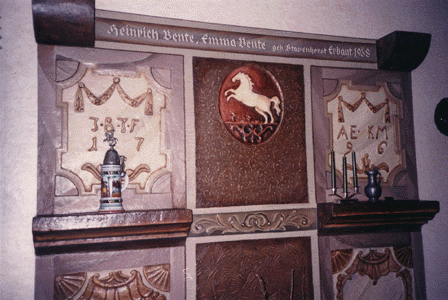 This is the original mantle, Heinrich and Emma Bente had the house rebuilt in 1938. The original Freese house was built in 1796 by Johann Bernard Jurgen Freese.