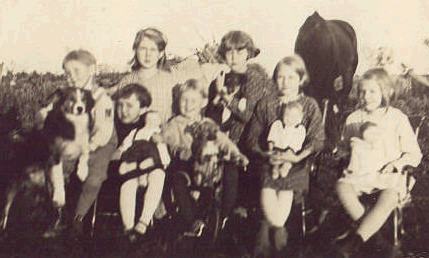 l to r: Carl Brakensiek, Mabel Freese in front of Lucile Brakensiek, Emmet Brakensiek, Malinda Brakensiek, Sidonia Brakensiek, Lottie Brakensiek