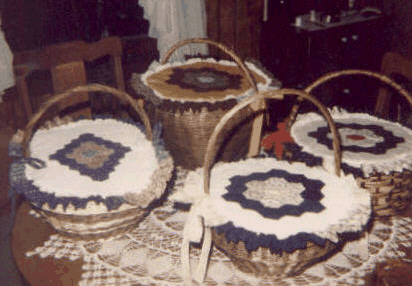 Quilting is Emily's favorite hobby. She has made many of these baskets for presents. The count in 1998 was 70+.