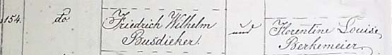 The Marriage Record of Friedrich Busdieker and Florentine (Berkemeier) Busdieker