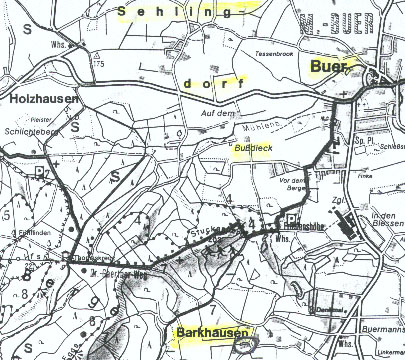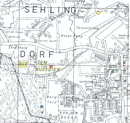 Red marks original homestead, blue is where Ernst Heinrich lived before moving to America.
