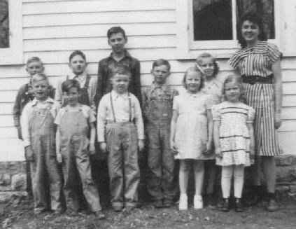 Emmet Brakensiek, Lawrence Busdieker, Elmer Tucker, Ruby Brakensiek, Marilyn Holt and Mabel Freese. Ten 1/2 years later Mabel married Lawrence, with Marilyn and Emmet as Attendants.