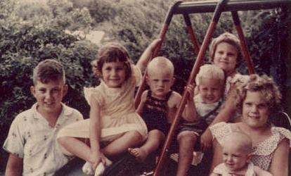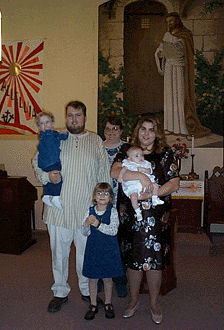 Kayla in front, Jeremy holding Brandon & Nichole holding Clayton, and Linda in the back