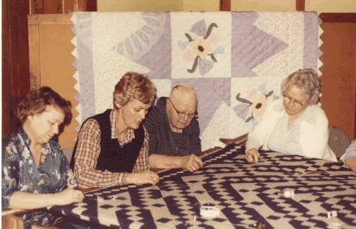 This quilt won an award from ?, l to r: Barb Masker, Jane Wok, Erna Brakensiek, Carrie Baldwin