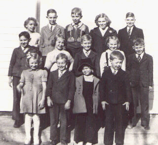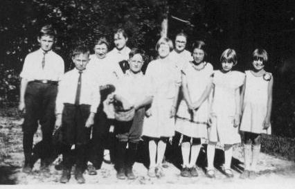 Louis Brakensiek, Raymond Brakensiek, Kenneth Paul, teacher Ruth Bethold, Leroy Richards, Nora Wildschuetz, teacher Alice Gerderman, Katherine Richards, Leona Niederjohn, and Emily Stratmann