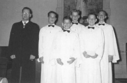 Rev. Fricke, Mike McCabe, Roy Ramey, Delbert Ellerman, Richard Ramey and Keith Schnarre