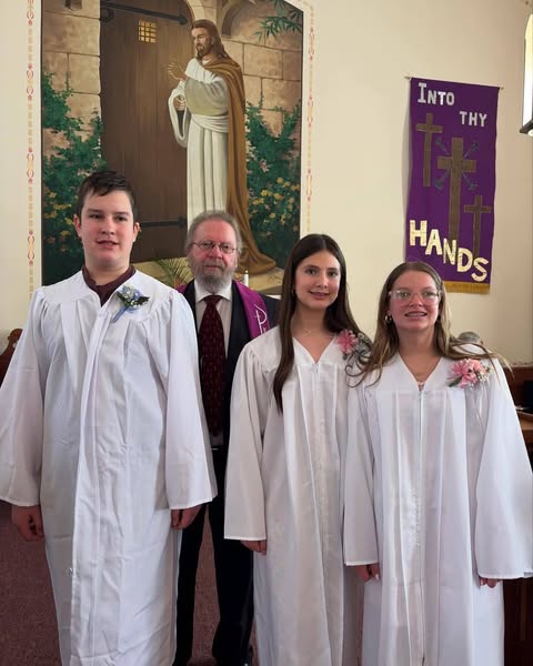 Will Chilcutt, Pastor Paul Johnson, Tristyn Cook, and Claire Sudbrock.