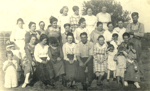 back 1st person Lydia Freese, middle row last 2 people= Clementina and William Freese, rest unknown