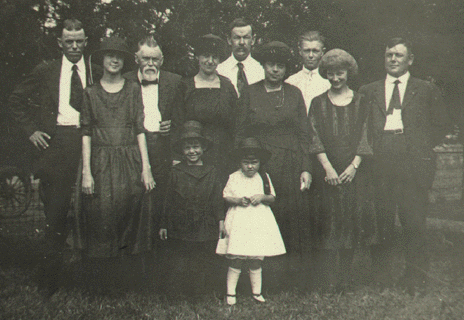 ?, Johanna behind Malinda, Oscar standing, Heinrich, Herbert, Lydia behind ?, ?, Margaret.