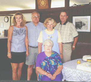 Cheryl, Paul, Marcia, & Ron behind Vera on her 80th birthday