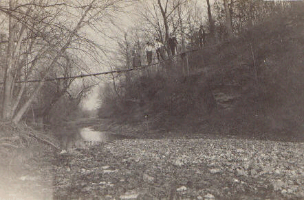 This foot bridge was over the Dardene Creek on the August Giessman property. Emmet and sister Lydia used this bridge daily to go to school in the early 1900's. People unknown