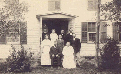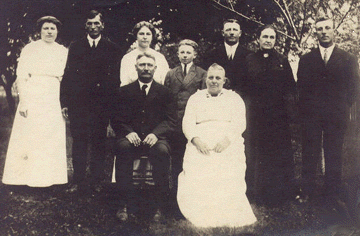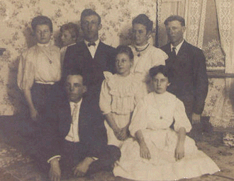 back: Louis and Alma Shroeder, Jenny and Harry Giessmann middle: Amanda, Louis, and Albert Giessmann front: Henry and Christina Giessmann
