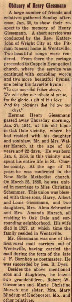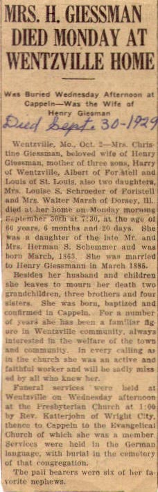 Henry and Christina Giessman Obituaries
