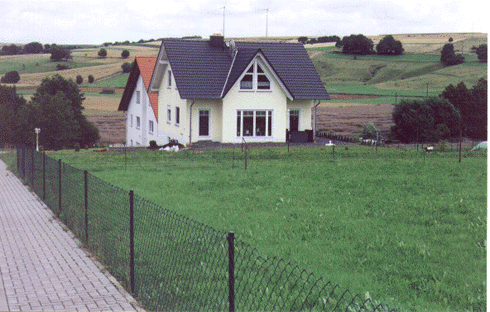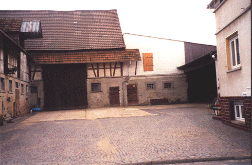 This was a typical family dwelling in the center of town. House on the right, barn to the left and rear. Frequently two generations would live in the house. Things were always clean, tractors were small, 25 horsepower or less. We were told there were only two full time farmers in the area. Most in the town commuted to Nidda or Frankfurt for employment. Some people would have a few horses outside of town. The outer ring of town were newer homes, immaculate with many plants and/or flowers.