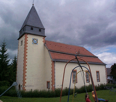 The sheet of information the pastor gave us told us that Ulfa in 1940 was a place of about 1100 residents in the vicinity of Schotten. The sheet was entitled "Where Hangs the Oldest Bell in Hessian Evangelical Churches?" The answer was it hangs in the steeple of the Evangelical Church in Ulfa. It was cast in 1334 according to the inscription on it. Perhaps the old bell tolled while Conrad's grandfather married Elizabeth Ludwig in 1796, and later when Conrad's Great-grandfather in 1813 and his grandfather in 1822 were carried to their final resting places. Because the bell is so old, it is now only rung on Christmas and New Year's Eve. Newer bells are also in the tower and rung every Sunday. The sound of chiming bells came from the church tower every hour while we were nearby.