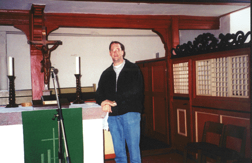 Lyle at the alter in the Evangelical Church in Ulfa. The church of his Holt ancestors