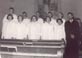 back: Thomas Holt, Sonny Jungerman, Bobby Schmidt, Ralph Ramey, Jimmy Jones front: Arlene Paul, Elaine Welge, JoAnn Cunningham, Opal Paul, Norma Massmeier, and Rev. Carl Frike