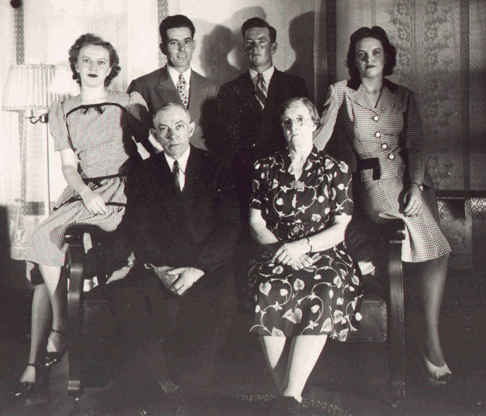 Estella, Victor, Layton, Enid behind Wilbert and Frances Holt