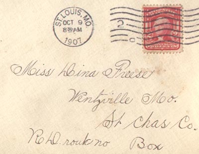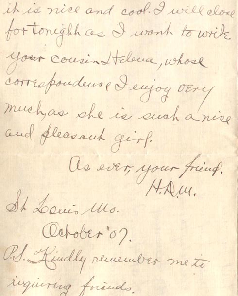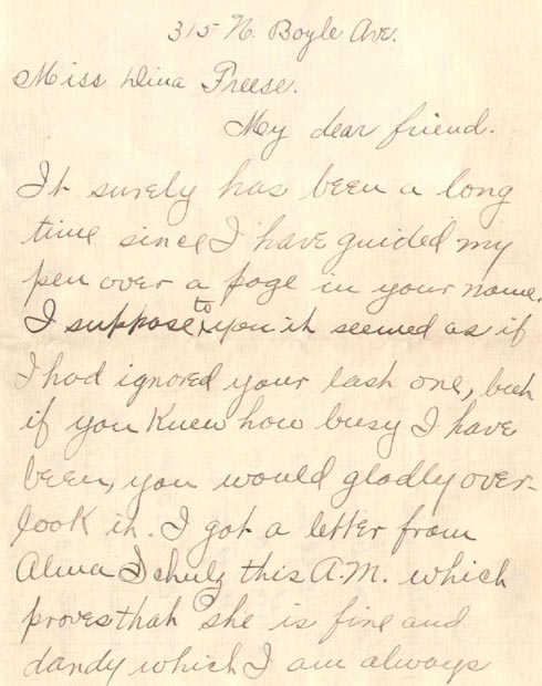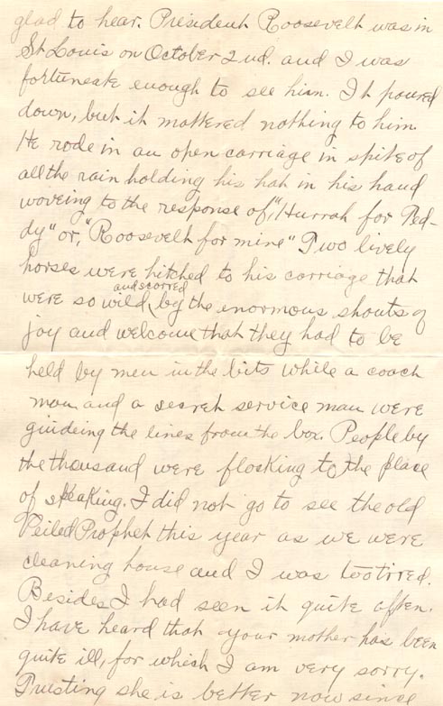 This letter written by Hattie Marsch to friend Dena Freese includes a description of Teddy Roosevelt's ride throught St. Louis in 1907