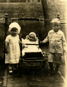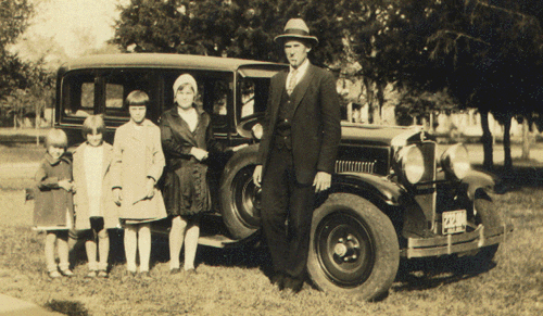 Rev. T.E.C.Haas with Dora, Alice, and Carlie. Taken 8 Jun 1930 at Oklahoma City, OK.