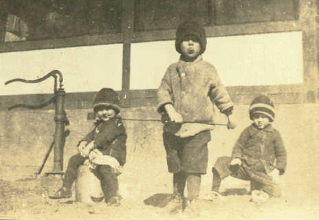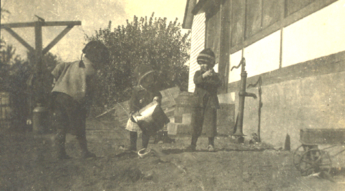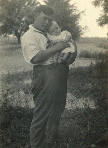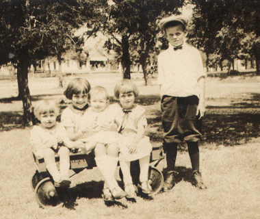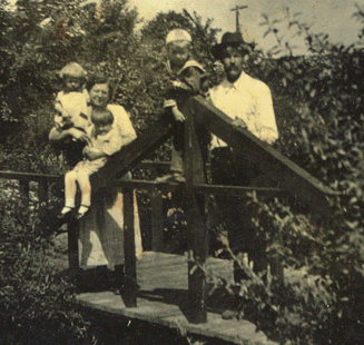 Dora Malzahn, Alice Malzahn in front of her Aunt Irene, Carl Malzahn with Uncle Bill Freese