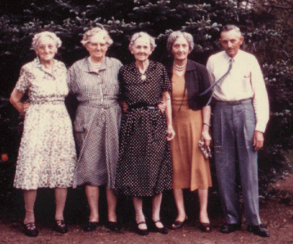 back: Grace (Freese) Twiehaus, Catharine (Roche) St. Clair, Gladys Unterbrink front: Alice (Freese) Molitor, Mary (Roche) Dosenbach, Amanda (Giessmann) Marsch, Bernice (Unterbrink) Dawson