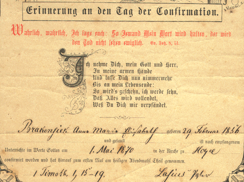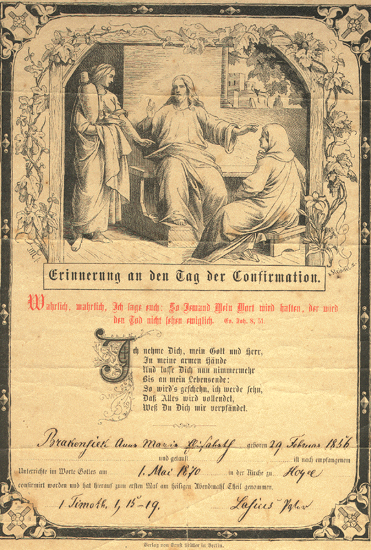 Certificates of Anna Maria Elisabeth "Catherine" Aufder Masch