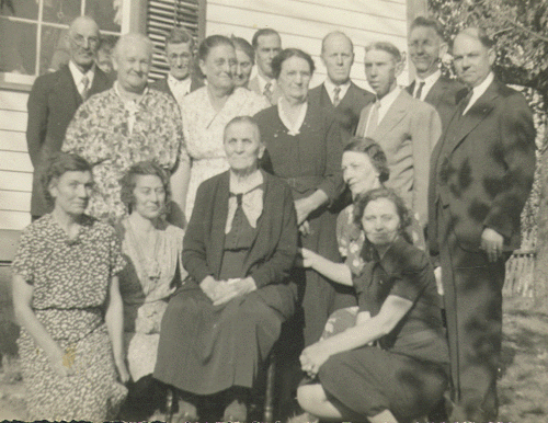 Sophia and Fritz in front of Christine, George, Lina, Minnie, Frank, Anna, Dena, Lizzie
