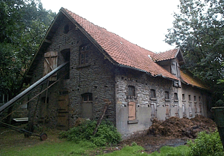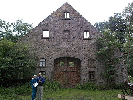 At 8 am, July 17, 2000 Hans Nieweg came to pick up Ruth and me and take us to what he said was the Nieweg house. Records from the church at Bissendorf had revealed that Niewegs were in that area since 1684. The old house had only the big front stone wall of the house still standing. A large barn was still filled with swine. Lots of old machinery was nearby. The sign Drinum Nienum was close by. We snapped some photos. Then he tried to find out where Borgholzhausen was from someone in a village. The answer he got was it was about a half hour further on a narrow road and Hans said he and his wife would go there sometime and send us some photos they would take.