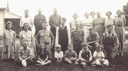 2nd row: Marilyn (Holt) Rosburg, Marie (Marsch) Runkles, Lawrence Busdieker, Wesley Bote, Lester Minershagen, Elwood Busdieker, Wilford Bote