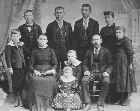 Back: Emil, William, Edward, Ida Front row: John, Mother Wilhelmine, Laura sitting in front Florence, Father Christian, Amanda Sister Clara was born a year later