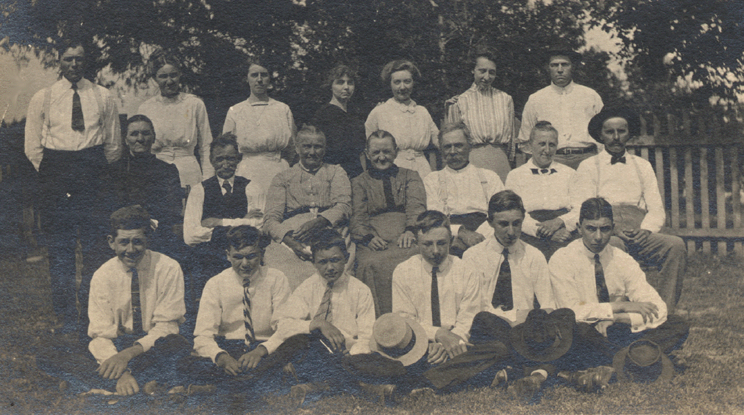 People identified by Clarence Welge in 1984. This may have been a gathering at the home of Fritz and Johanna Paul