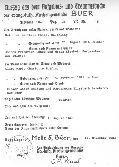and Clara Marie Charlotte Rohlfing