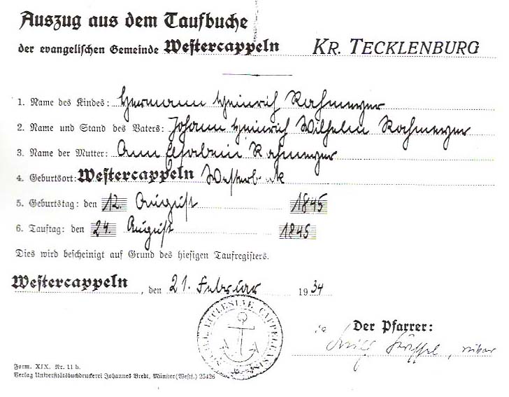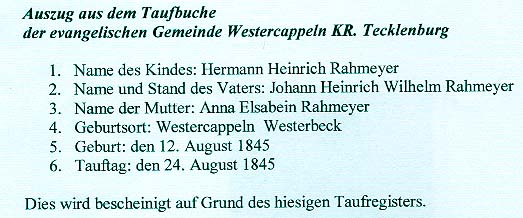 1. Name of Child: Hermann Heinrich Rahmeyer