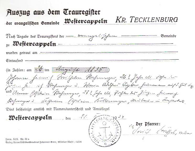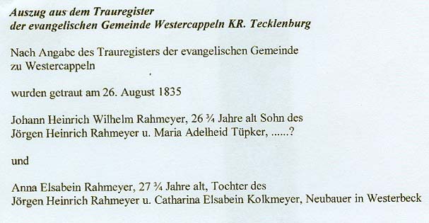 Jörgen Heinrich Rahmeyer and Maria Adelheid Tüpker, ...