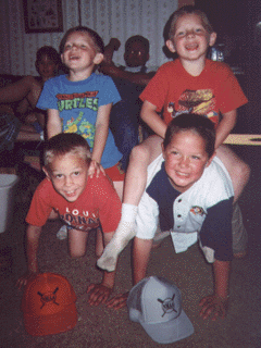 Bryan, Rosel, and Matthew behind Marcus, Michael, and Mitchell