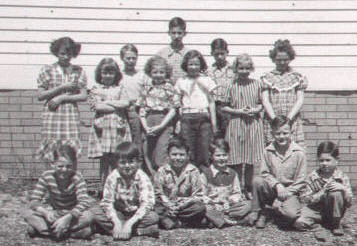 back: ? Williamson, Tom Rothrock, Ronnie & Darrell McCloud, Phil Rothrock, teacher-Mabel Freese