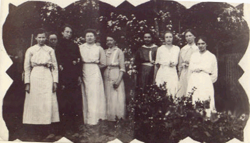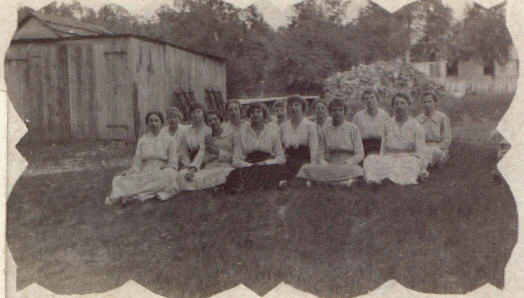 Edna (Holt) Borgelt, Laura (Thieman) Niederjohn, Meta (Duebbert) Freese, Alma (Giessman) Shroeder, Dena (Freese) Brakensiek, Lydia (Giessman) Freese, ? Niederjohn,? Niederjohn, Alice Niederjohn