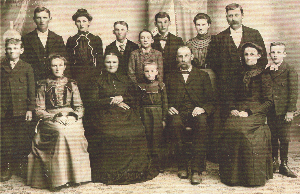 Alvin, Ed and Ida (Wildschuetz) Brakensiek, Louise Brakensiek, Louis Ferdinand behind Johanna (Schulz) Wildschuetz, Otto behind Celia, William, Louis Gerhard, Emma, Henry and Carolina (Wildschuetz) Shemmer, Edmund